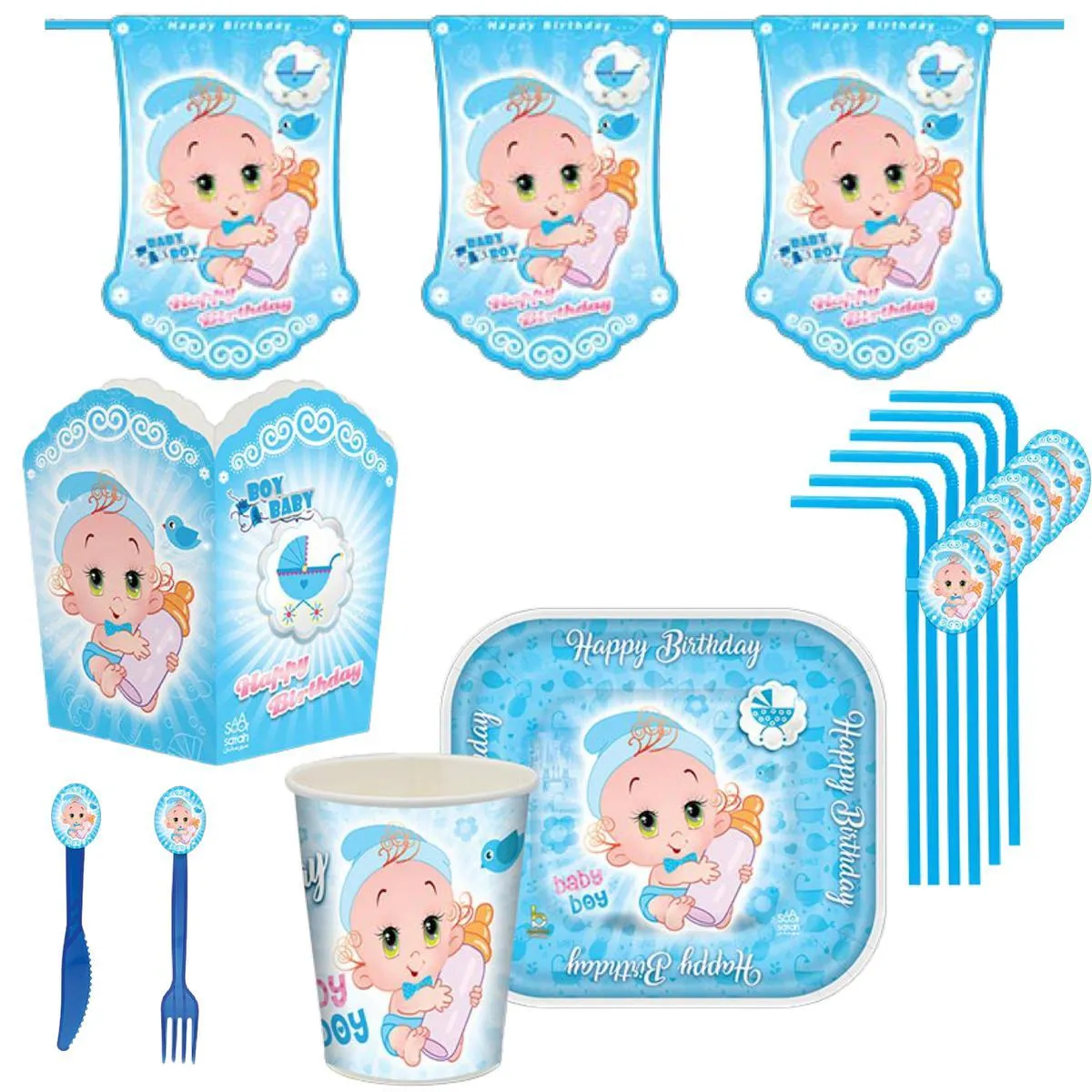 این تم شامل : کلاه, بشقاب لیوان, قاشق و چنگال, سفره, تاپر, کاغذپاش و … است.