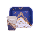 این تم شامل : کلاه, ریسه, بادکنک, قاشق و چنگال, بشقاب و لیوان, دستمال کاغذی, ظرف پاپ کرن و … میباشد.