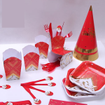 این تم شامل : کلاه, ریسه, بادکنک, قاشق و چنگال, بشقاب و لیوان, دستمال کاغذی, ظرف پاپ کرن و … میباشد.